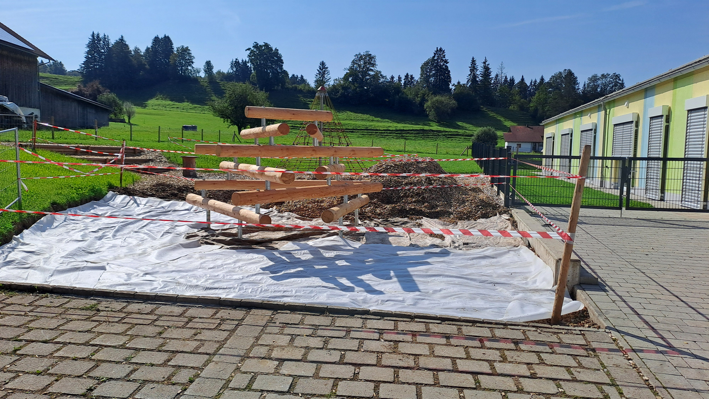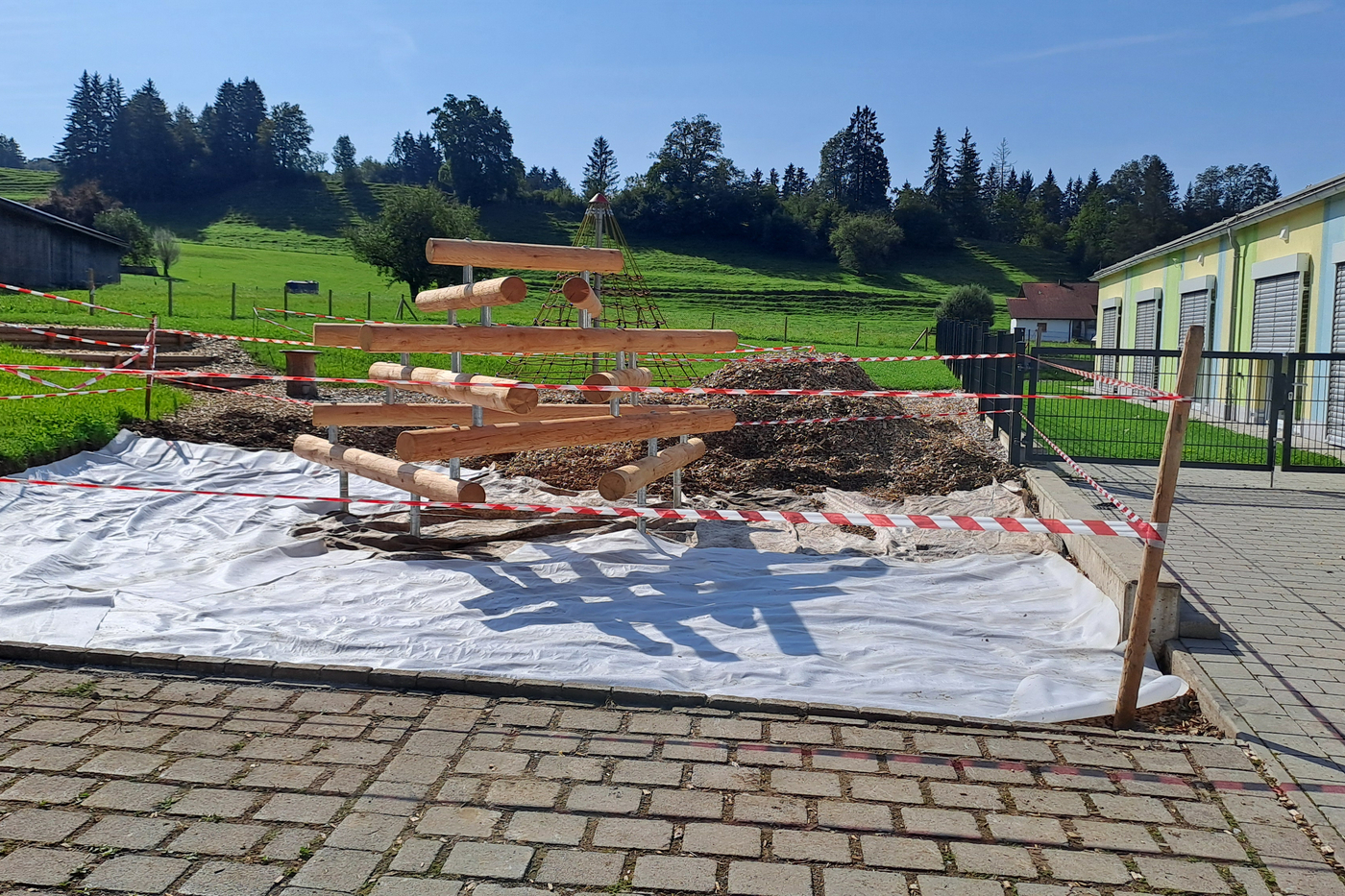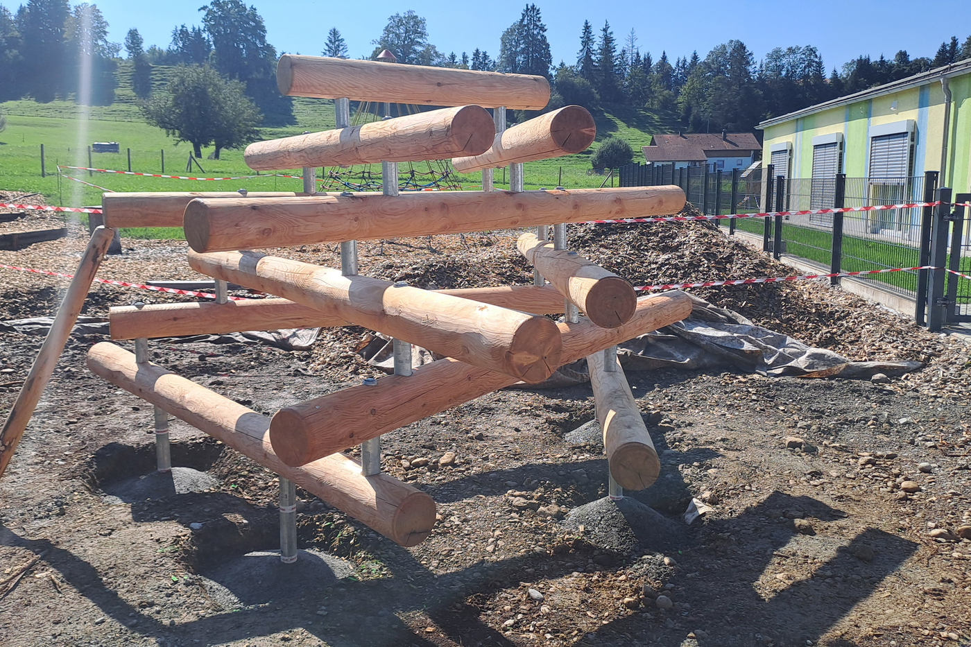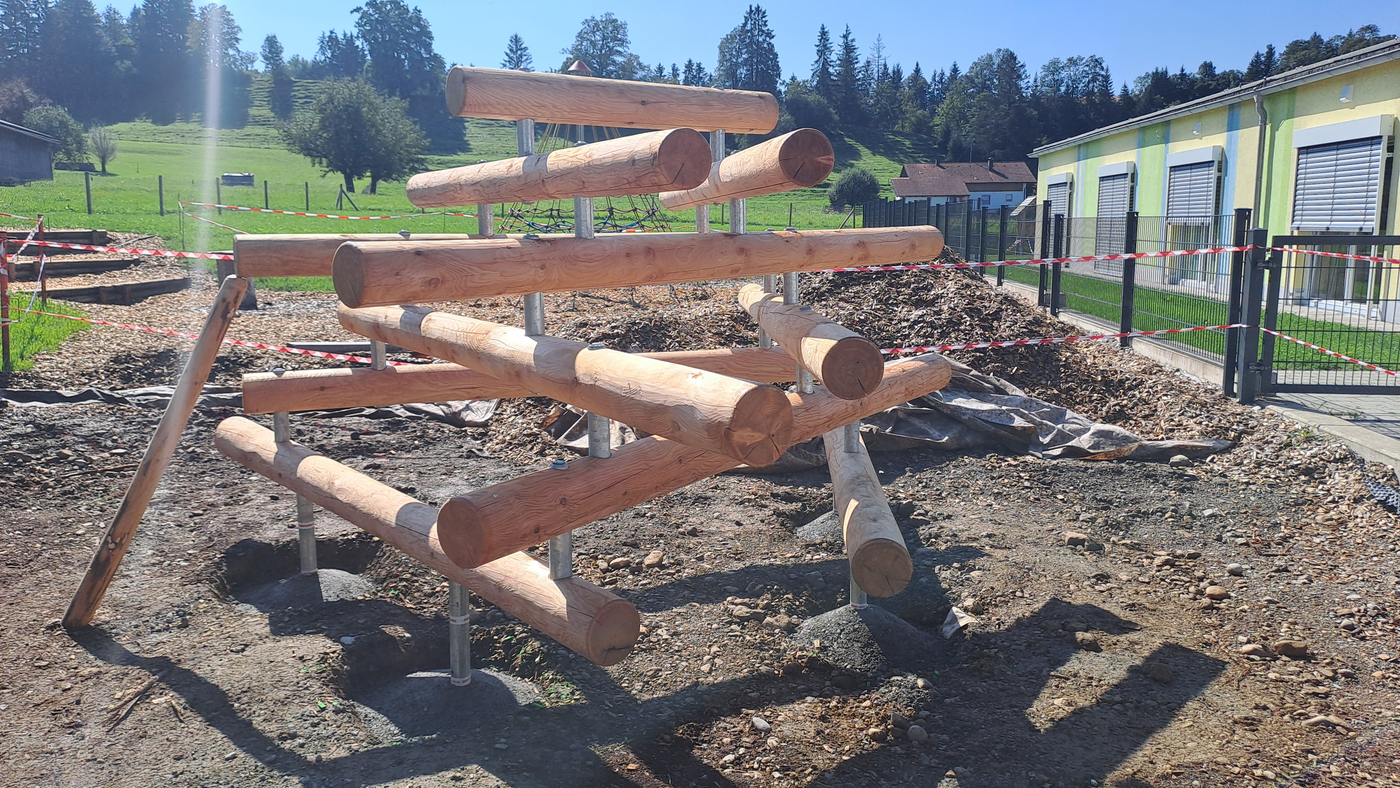 Unser Bewegungsplatz, der im letzten Sommer unter der Initiative und dem großem Einsatz von Richard Schmölz errichtet wurde, hat ein neues Gerät bekommen, den Kletterstapel. Das freut uns sehr - daher wollen wir uns auch ganz herzlich bei allen Beteiligten,Unterstützern und Helfern bedanken.