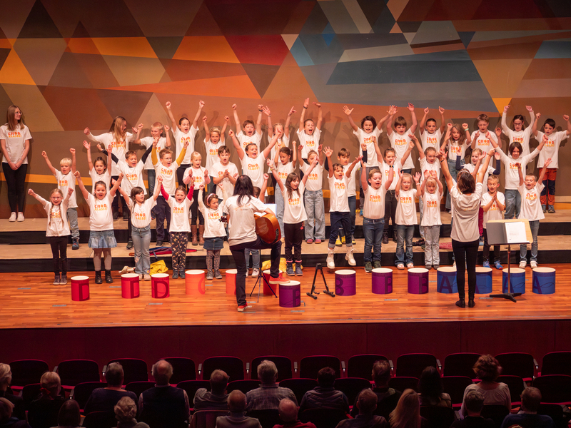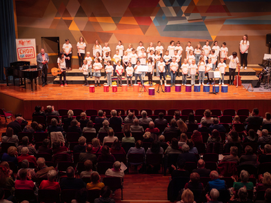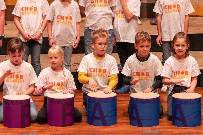 Am Sonntag, den 09. November 2025 durften wir, die Auerberg-Grundschule Stötten a.A., im Modeon in Marktoberdorf das Kreissingen vom Chorverband Schwaben mit einem tollen Beitrag eröffnen. Das war schon ein tolles Gefühl für uns alle. Natürlich herrschte Aufregung und auch ein bisschen Lampenfieber, hatten wir doch noch nie auf so einer großen Bühne gestanden und vor so vielen Menschen im Publikum gesungen. Mit voller Begeisterung trommelten und sangen wir - mit vielen Bewegungen - über den Regenwurm und auch vom Leopard. Das Lied “Jimba” konnten wir sogar mehrstimmig singen. Den ganzen Auftritt rundeten wir mit unserer Schulhymne “Ich bin anders als …” ab. So viel und so großem Applaus hatten wir nicht erwartet, das war natürlich doppelte Freude und Belohnung für unseren Einsatz!